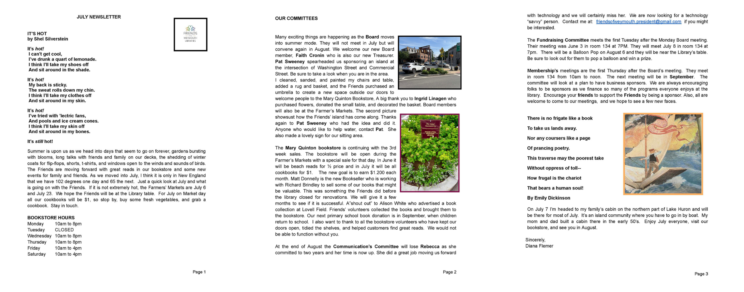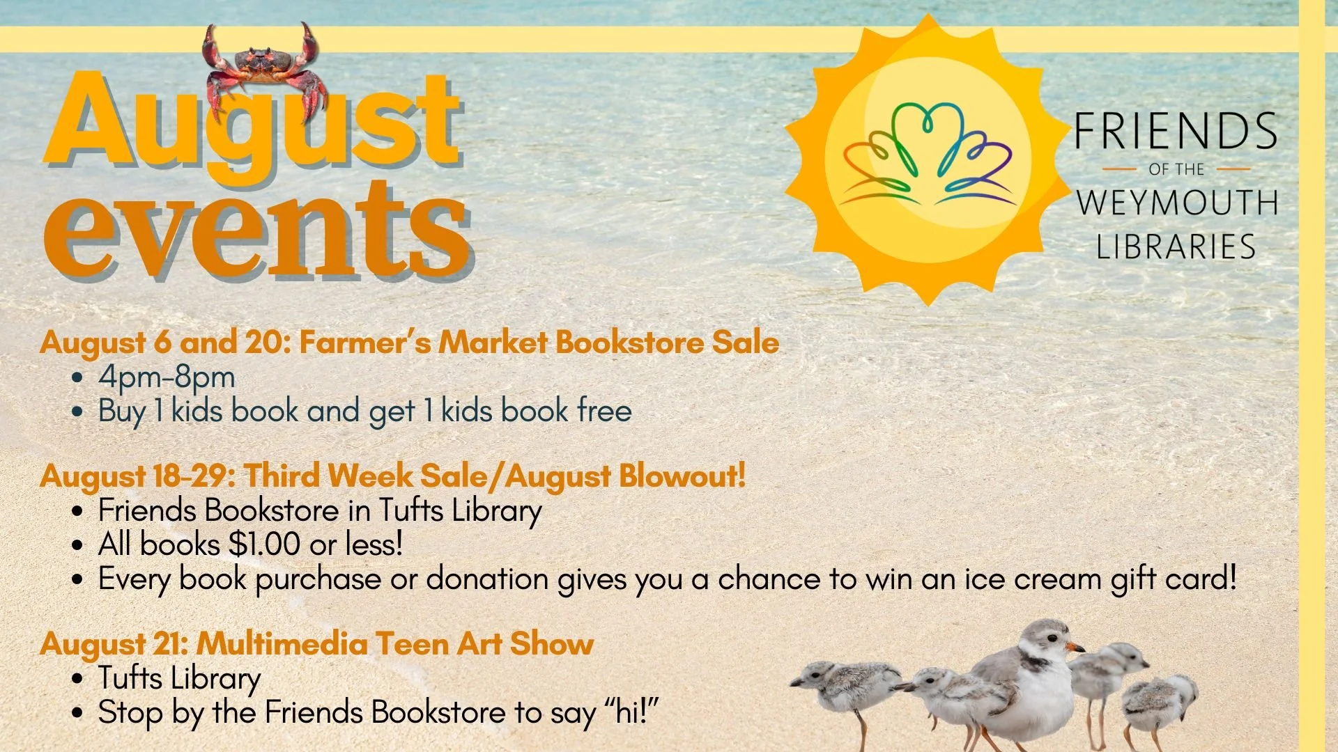 Our mission is to raise money and public awareness to support the services and programs of the Weymouth libraries.